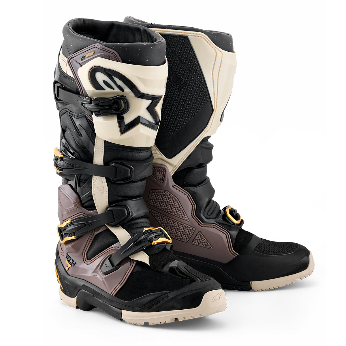 • A sola de composto duplo com especificação “Enduro” é integrada de forma contínua à base do pé com densidade múltipla, oferecendo excelente durabilidade, aderência e sensibilidade durante a pilotagem, além de melhorar o desempenho no pedal de câmbio.